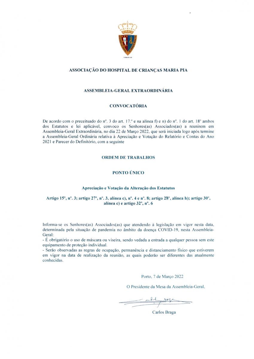 Convocatória - Assembleia-Geral Extraodinária 22.03.2022