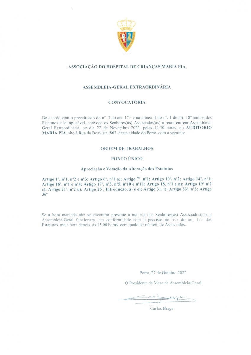 Convocatória AG Extraordinária Alteração dos Estatutos