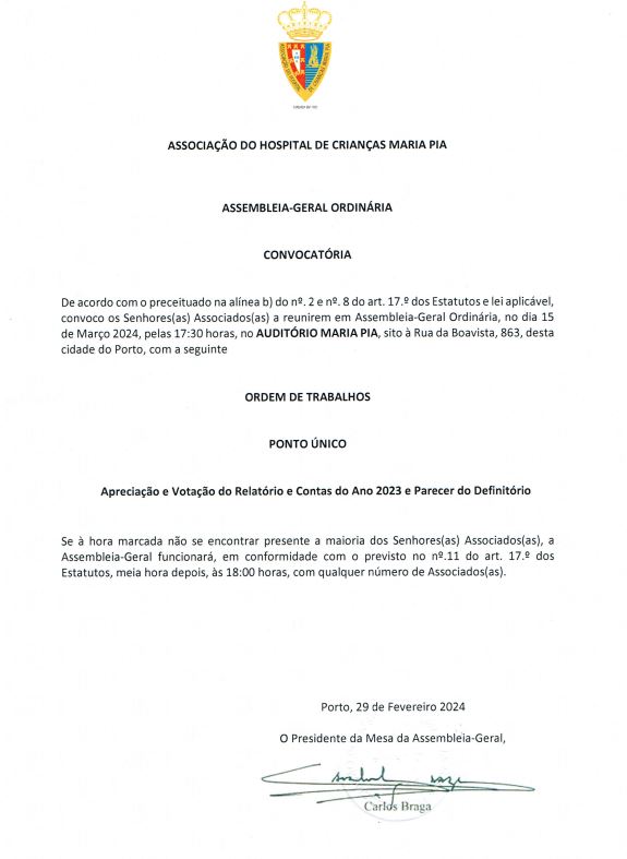 Convocatória Assembleia-Geral Ordinária Relatório e Contas 2023