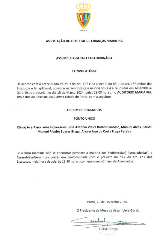 Convocatória Assembleia-Geral Extraordinária para Elevação a Associados Honorários